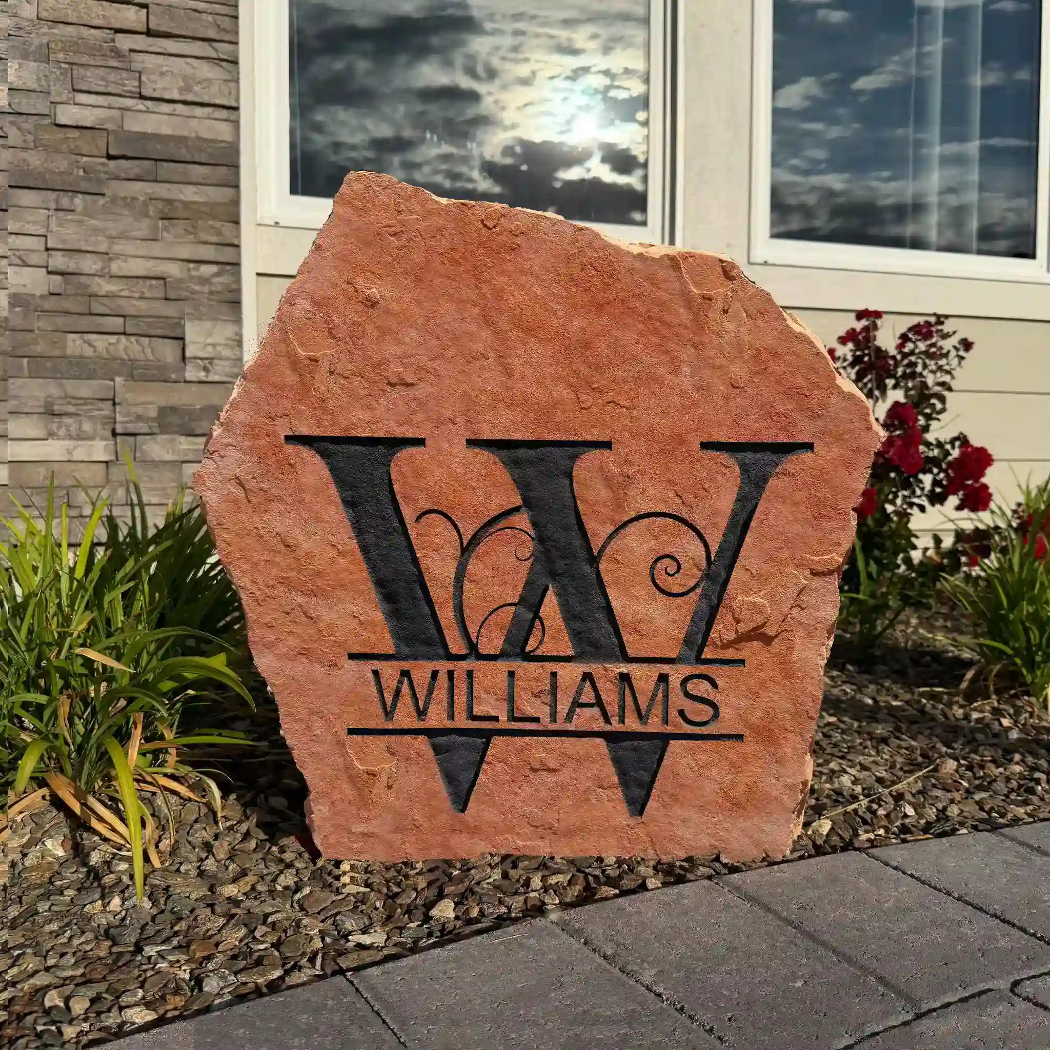 Simple, graceful, and enduring, the Elegant Monogram Stone offers a refined way to showcase your family’s initials or name with pride. Handcrafted from genuine Sedona-area flagstone — not cement — and deeply engraved for lasting beauty, it transforms any entrance or garden into a statement of timeless elegance.