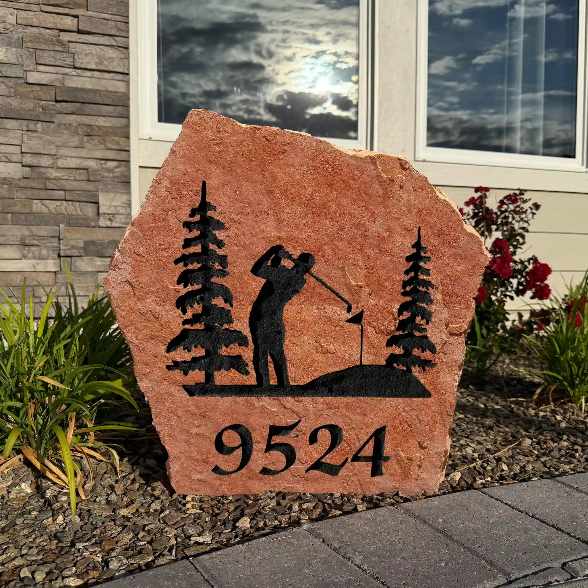Unlike imitation stones made from molded cement, celebrate your passion for golf with an elegant, deeply engraved Golf Address Stone. Crafted from genuine Sedona-area flagstone, this natural stone marker adds timeless beauty and personal pride to your home’s entrance or landscape.